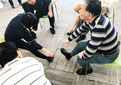 立つ、歩く、座るといった基本動作から日常生活シーンで行う動作を各人の目標達成に向けて個別訓練を実施します。